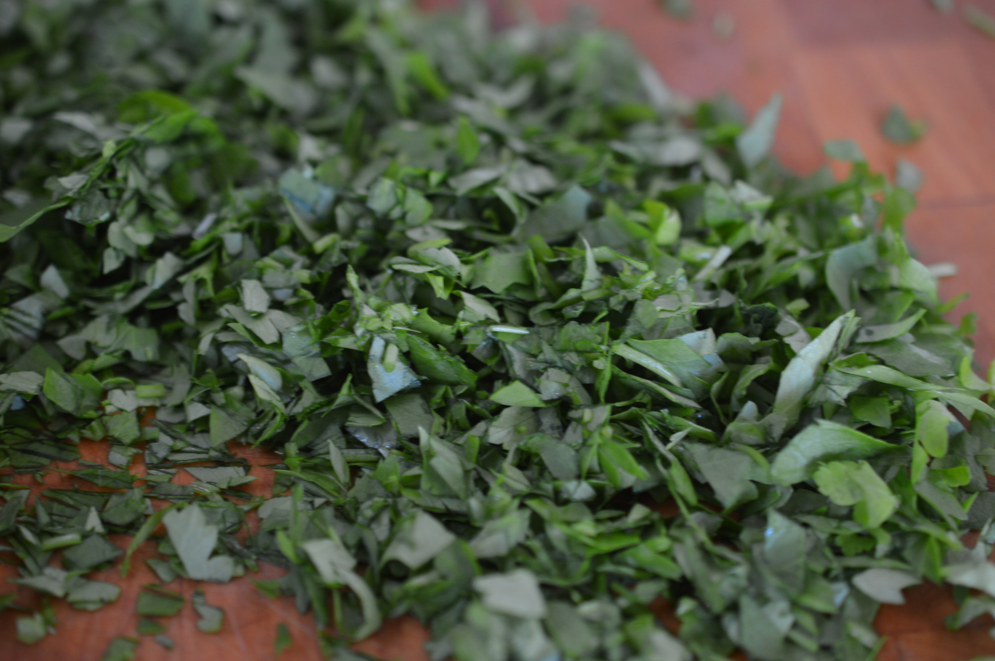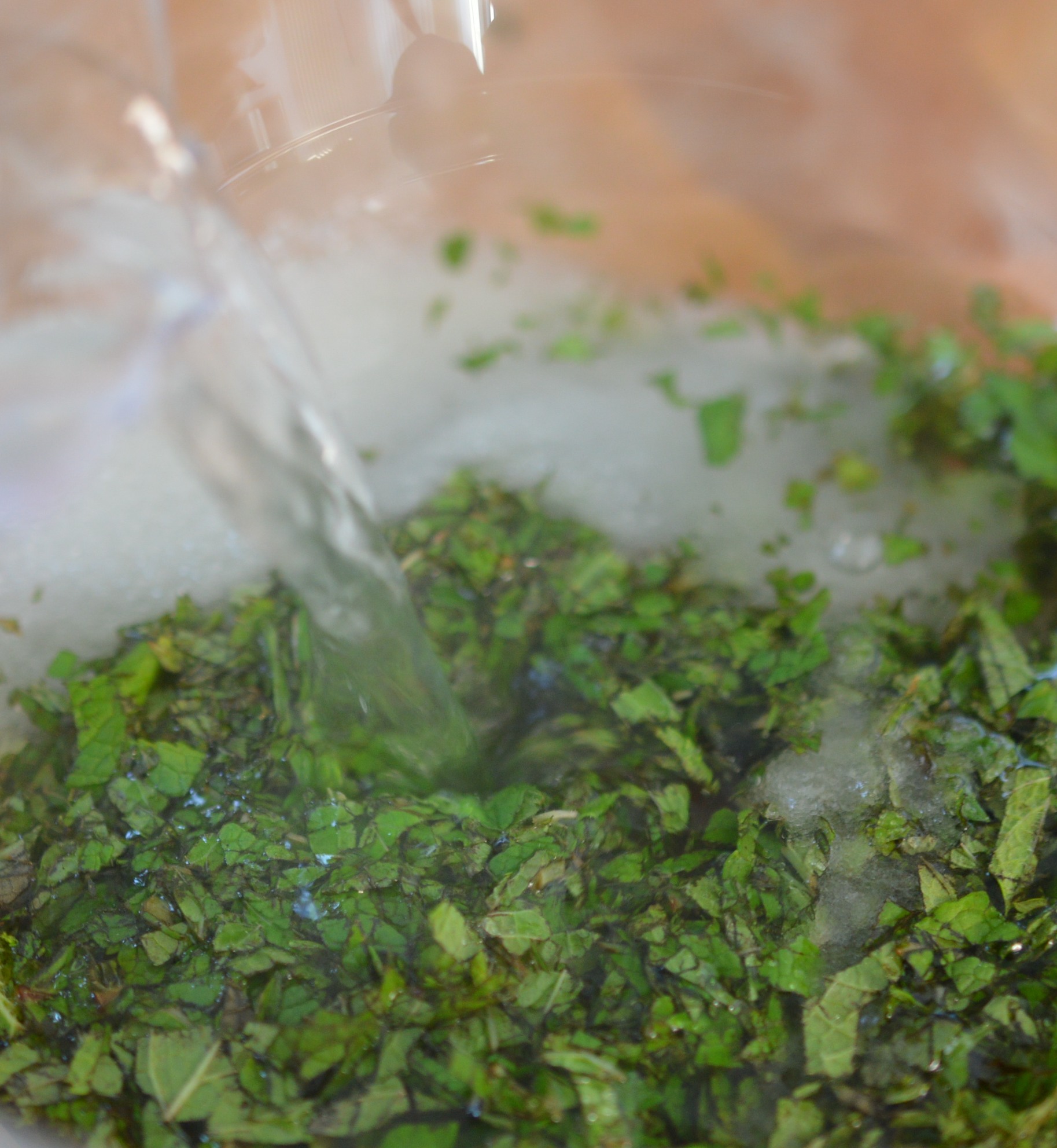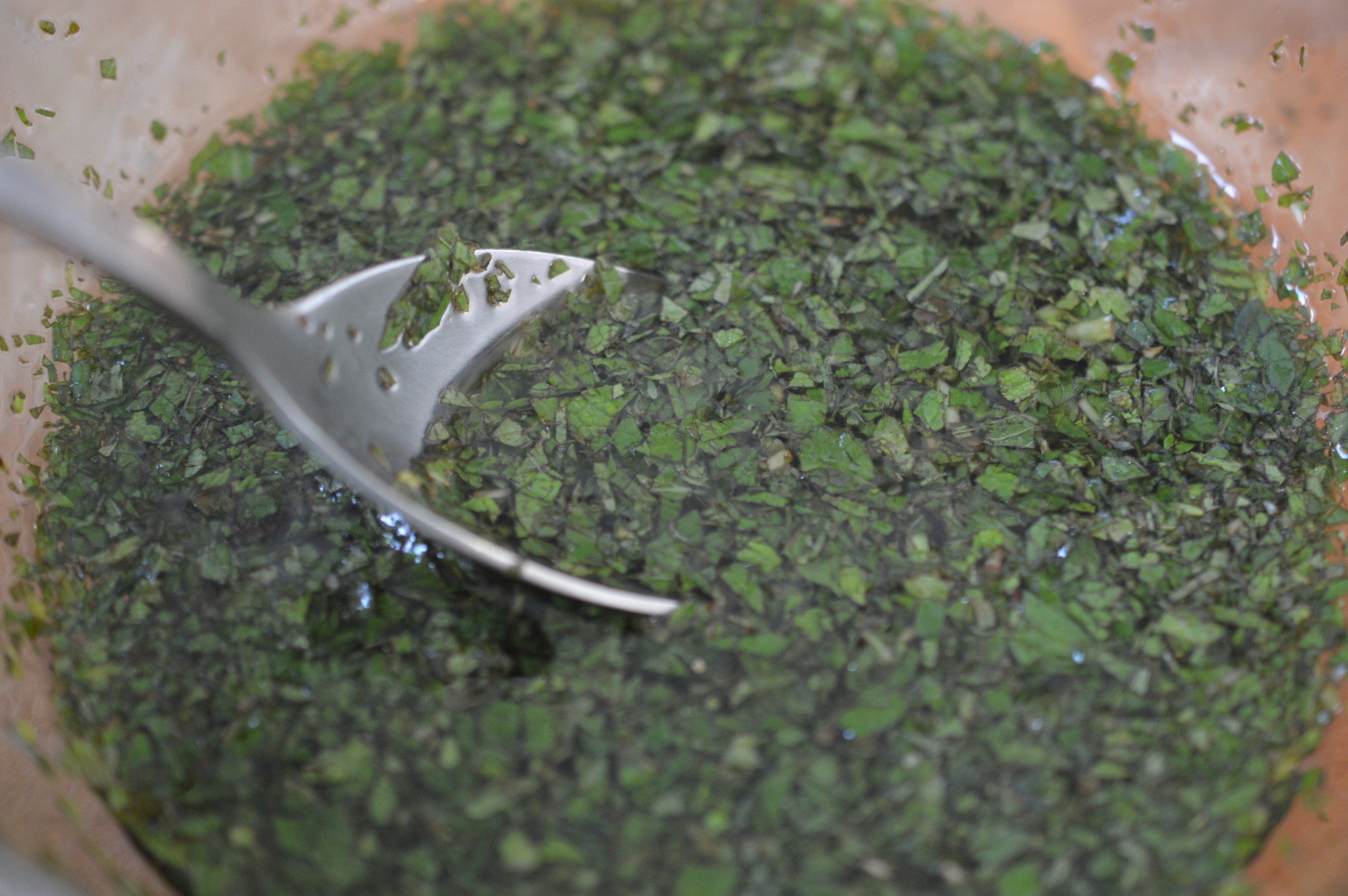 It begins with mint. Spearmint is my choice. Chop it finely. My mum used to have a gadget for this. A kind of mouli with super sharp spikes. I have absolutely no idea what’s happened to that ..!