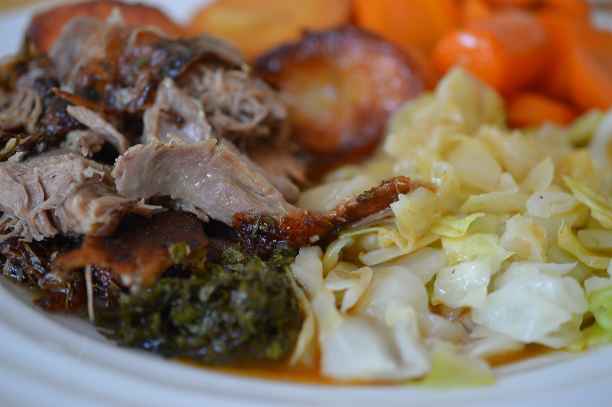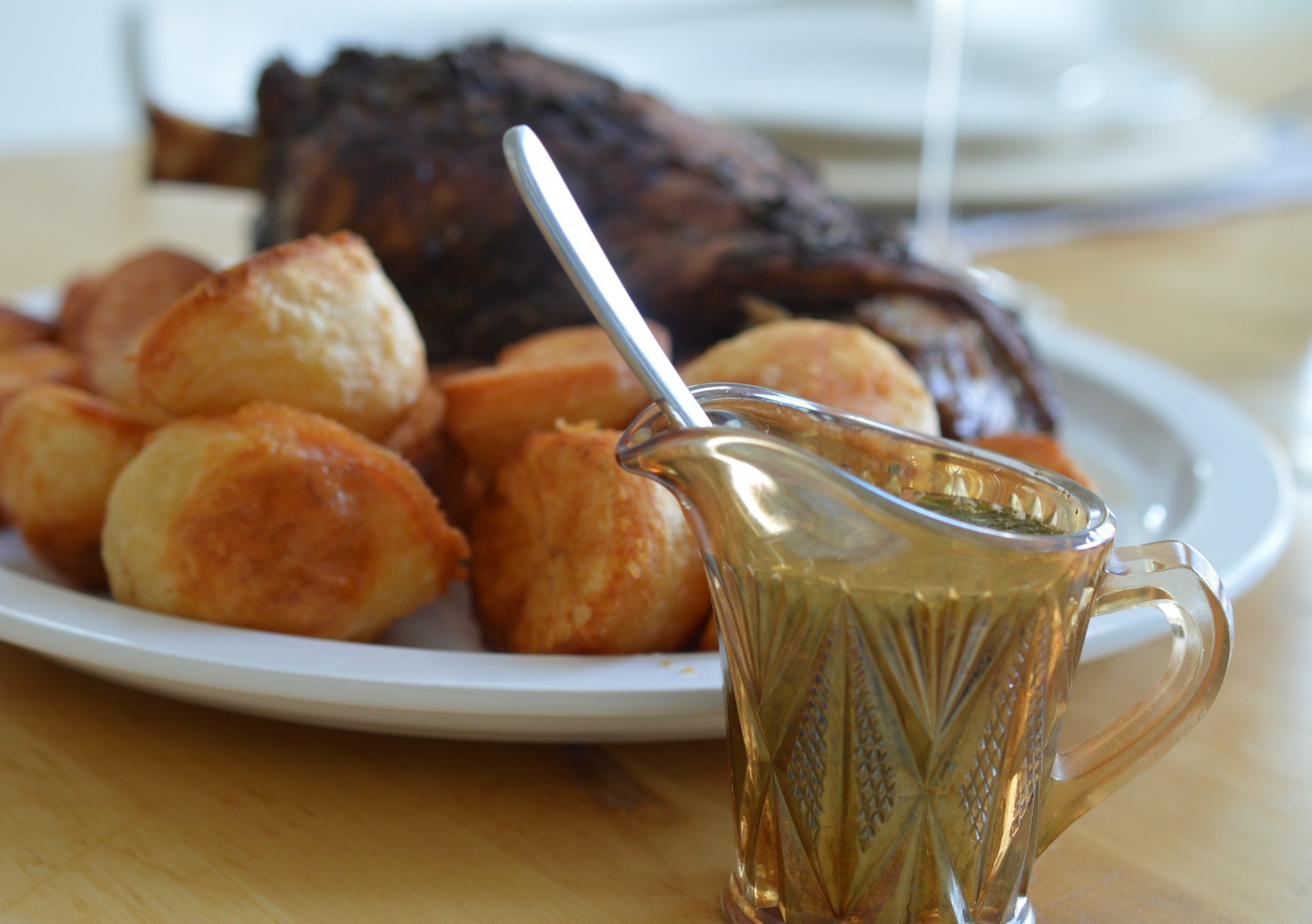 Sunday lunch today was slow-roast lamb. The kind cooked long and slow so it falls away from the bone. Roast potatoes, of course. Mint Sauce, naturally, and I’m under orders to post it here.