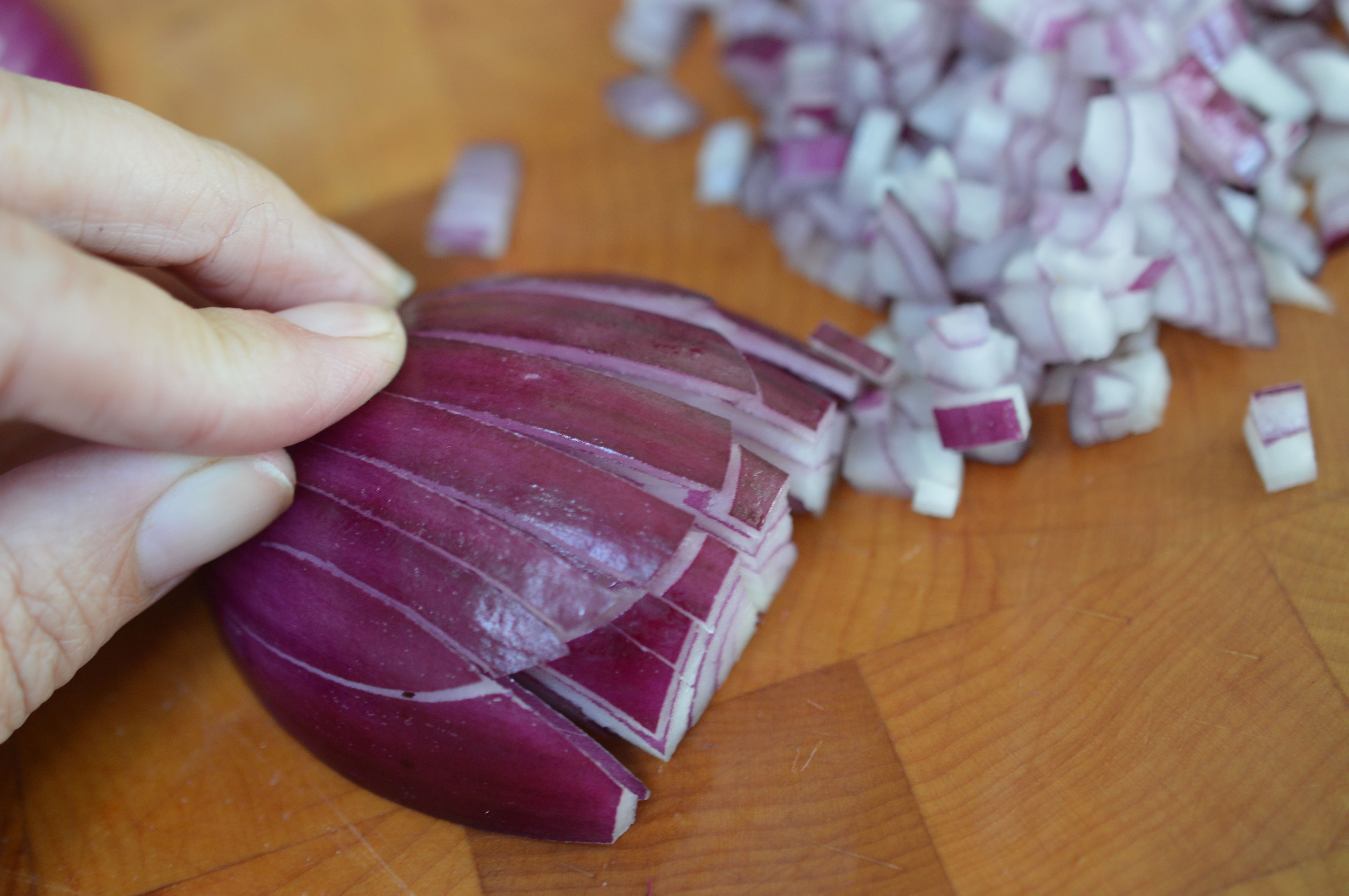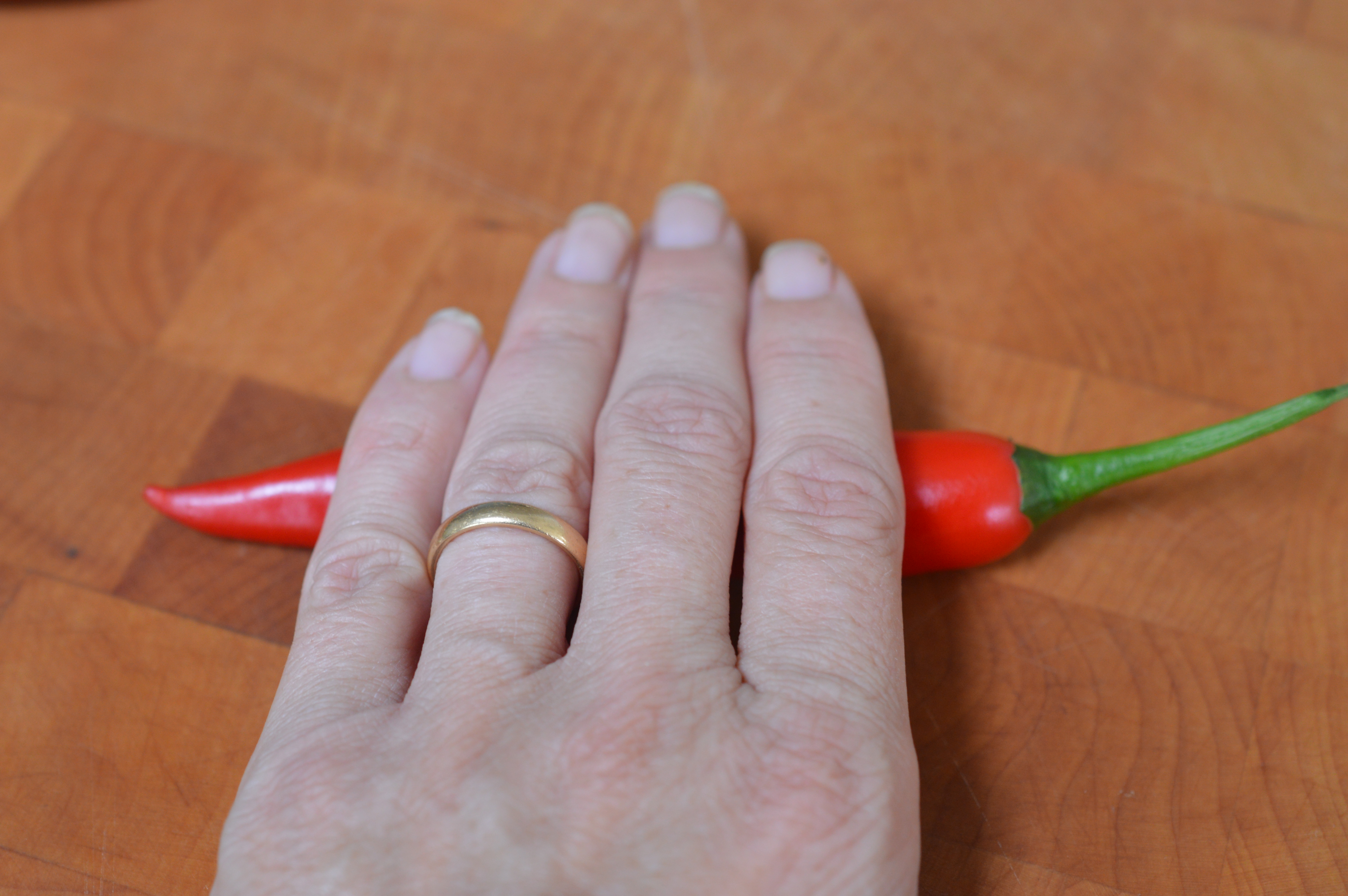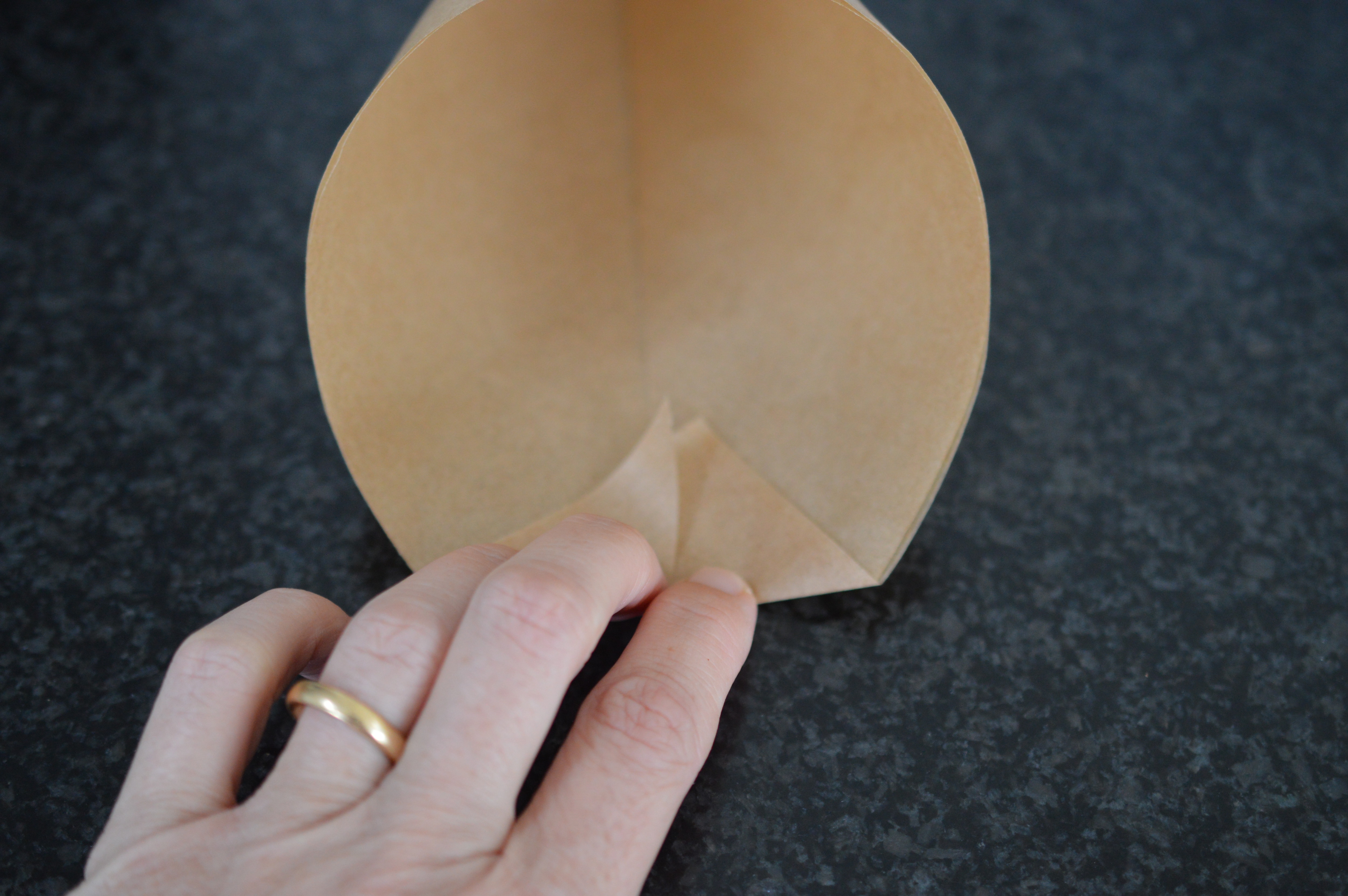 You are left with a triangle. Place it on the worktop with the 90º angle pointing towards you.