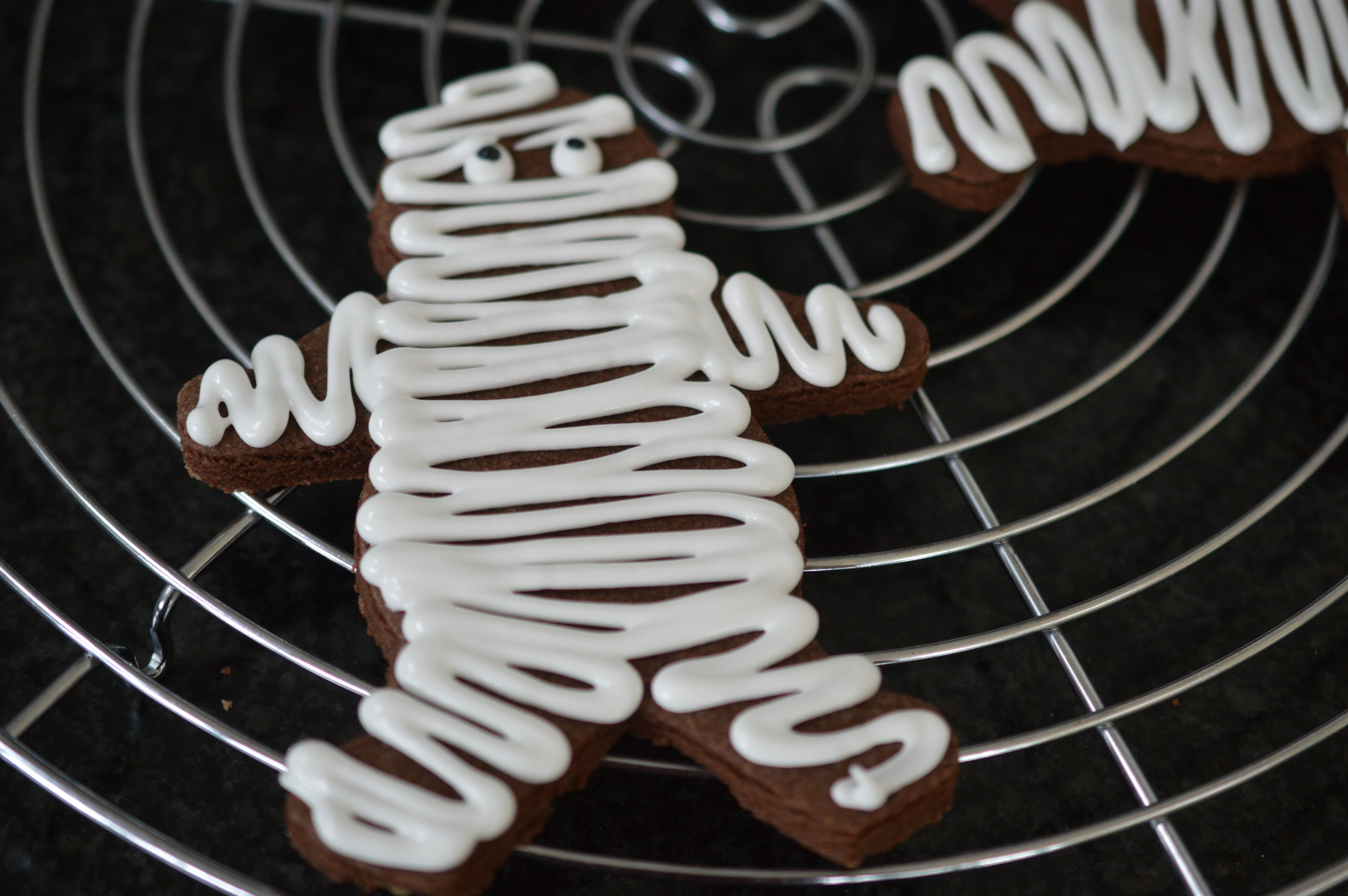 To me, this is a biscuit as opposed to a cookie – because in its ‘basic’ form it is dunk-able. I’ve used a Gingerbread Man Cutter but a chocolate biscuit dough – because it’s not Christmas and chocolate biscuits taste lovely. It’s in the form of a Halloween ‘Mummy’ because …. well, other people do that.
