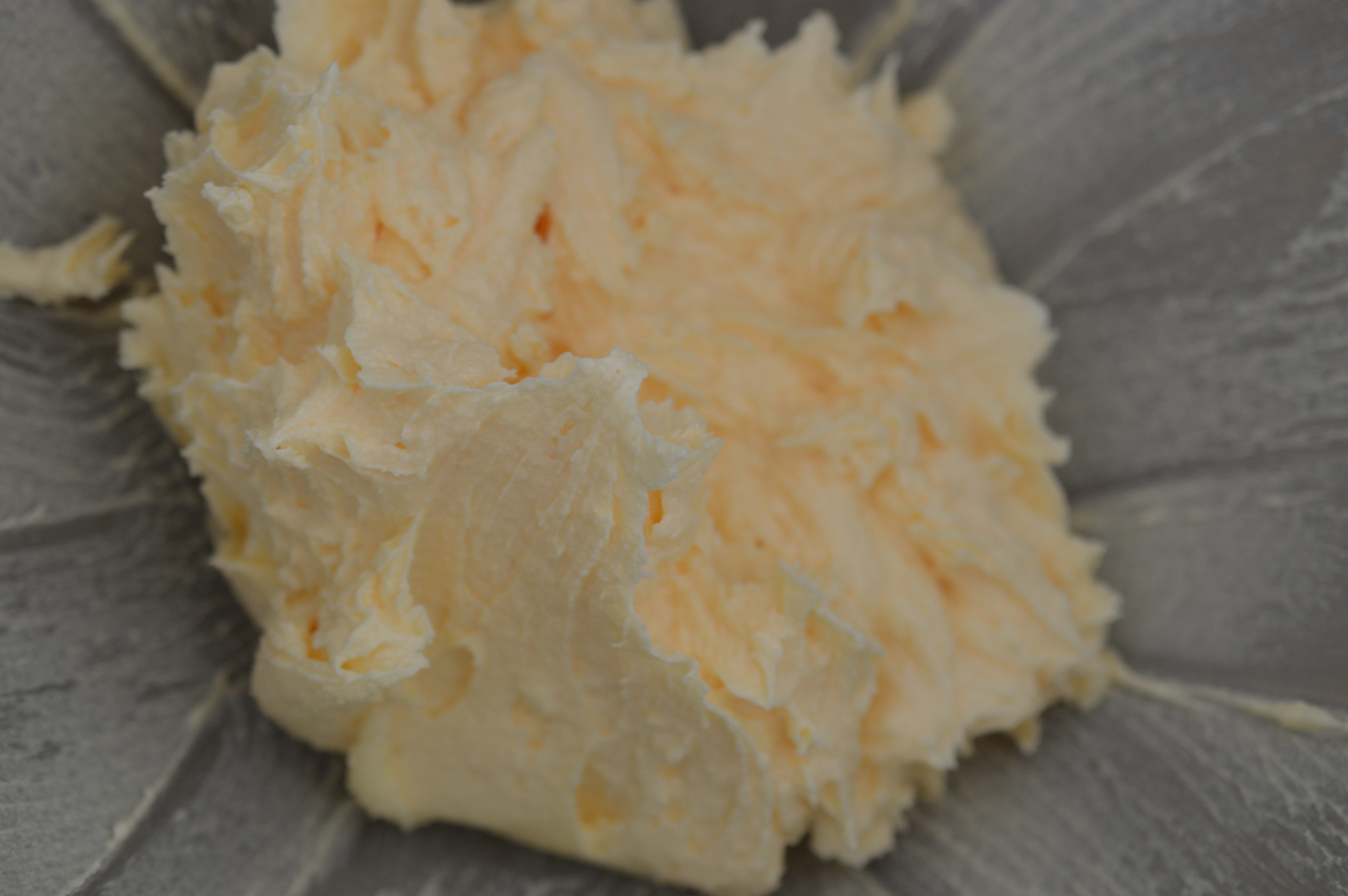Beat the softened butter together with the caster sugar. You are looking for ‘light’.