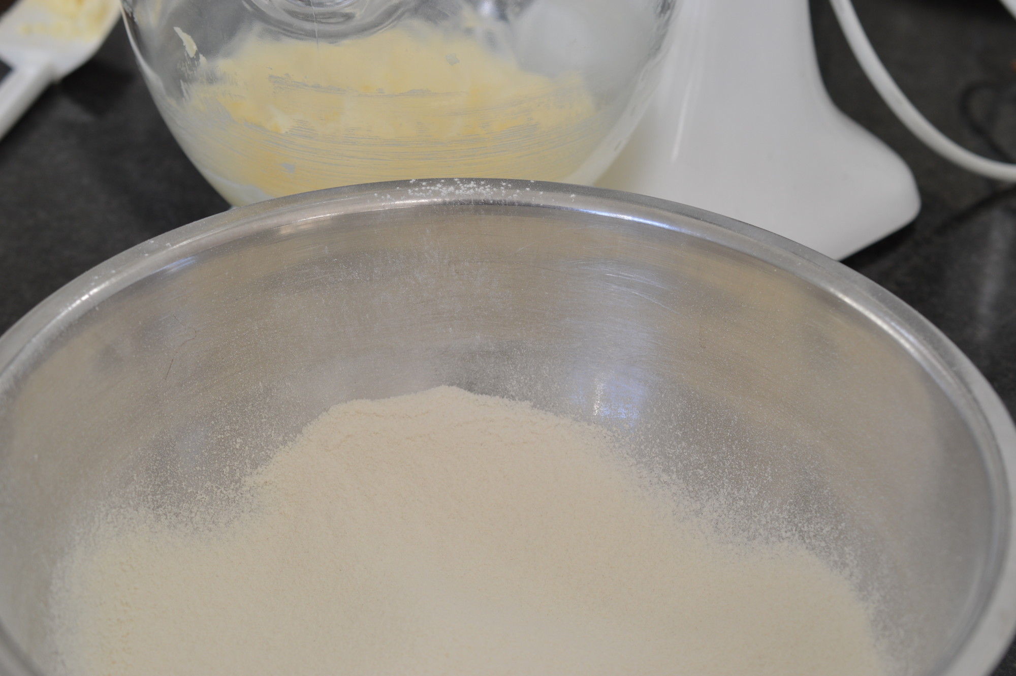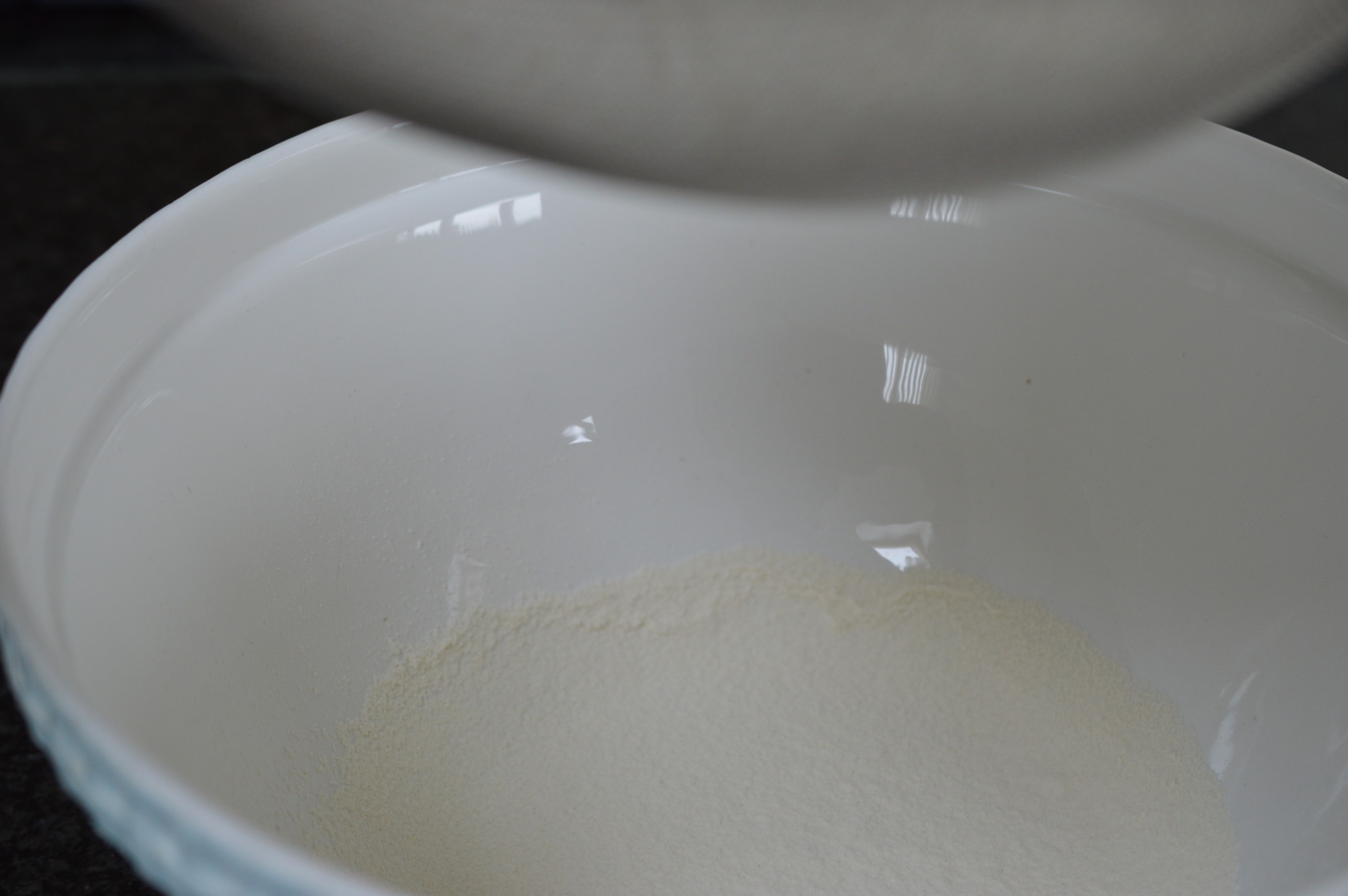 Have your flour ready. I sieve to get more air in and combine the two flours together.