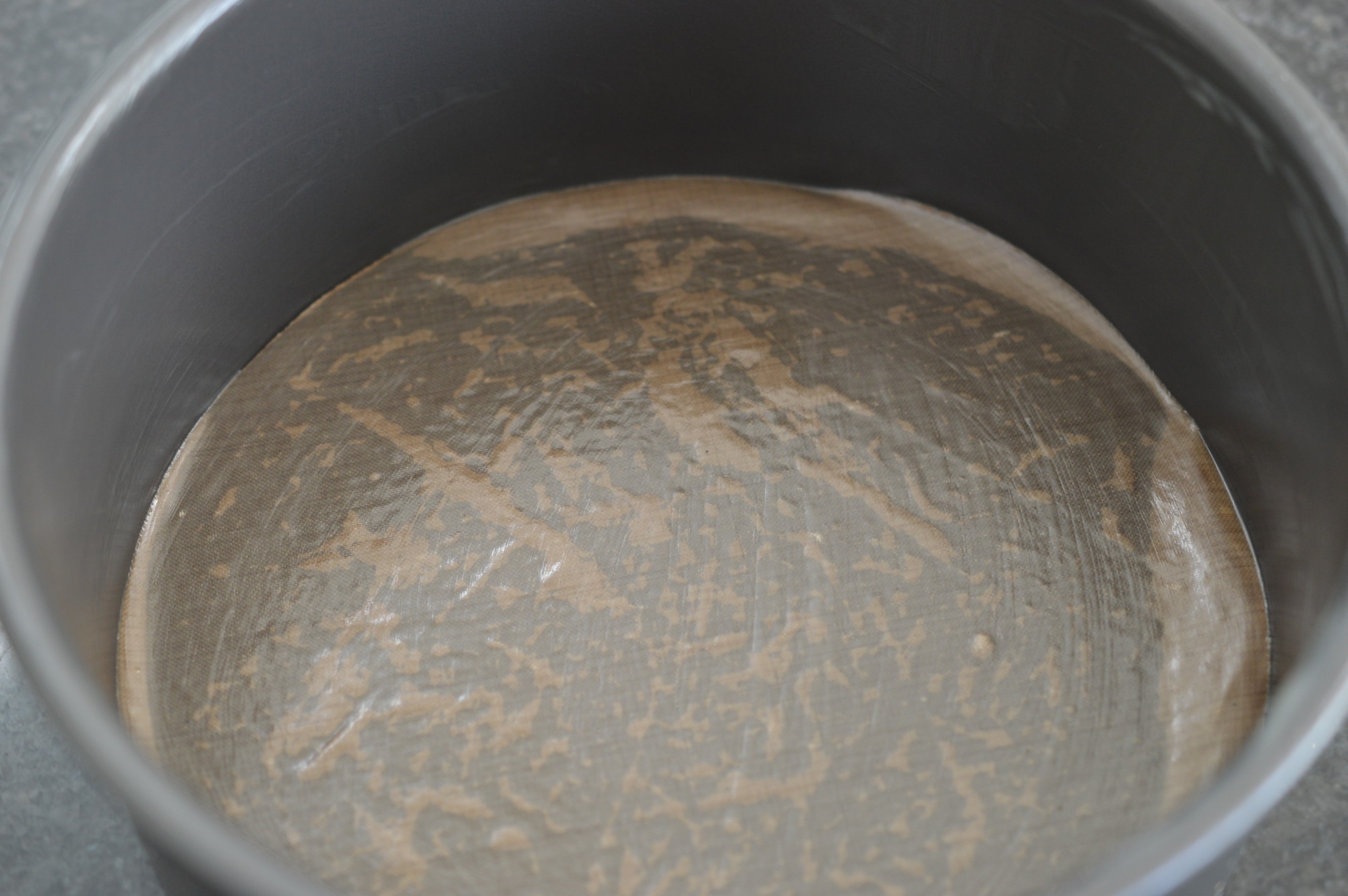 Start by preparing the 18cm/7″ cake tin. I use melted butter and place a circle of baking parchment at the bottom. Pre-heat the oven to 160ºC/325ºF/Gas Mark 3.