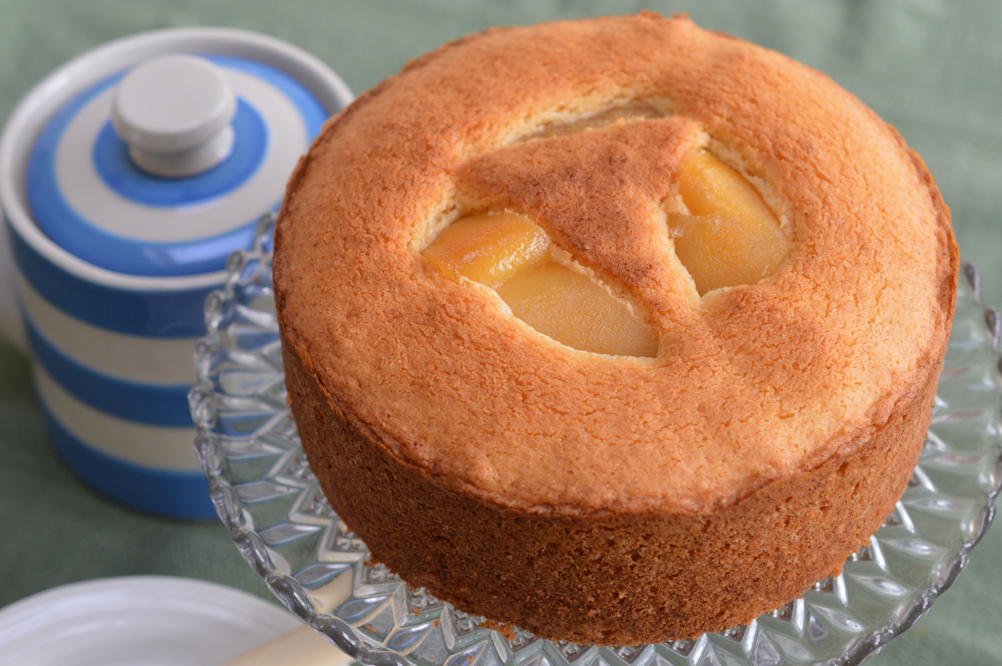My mum’s pressed glass cake stand seems the right way to serve it. Maybe not Madeira wine? I like a cup of tea.