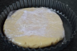 Sprinkle the water over and mix the dough with a round bladed knife until it starts to form lumps. Bring together to form a ball. Lightly knead until it is smooth and flatten into a disc. Chill for a minimum of 30 minutes.