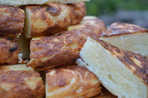Add another tablespoon of oil to the frying pan. Tip the ‘juices’ from the plate into frying pan and gently ease the tortilla back into the skillet. Fry gently until the underside is coloured. Keep everything moist.