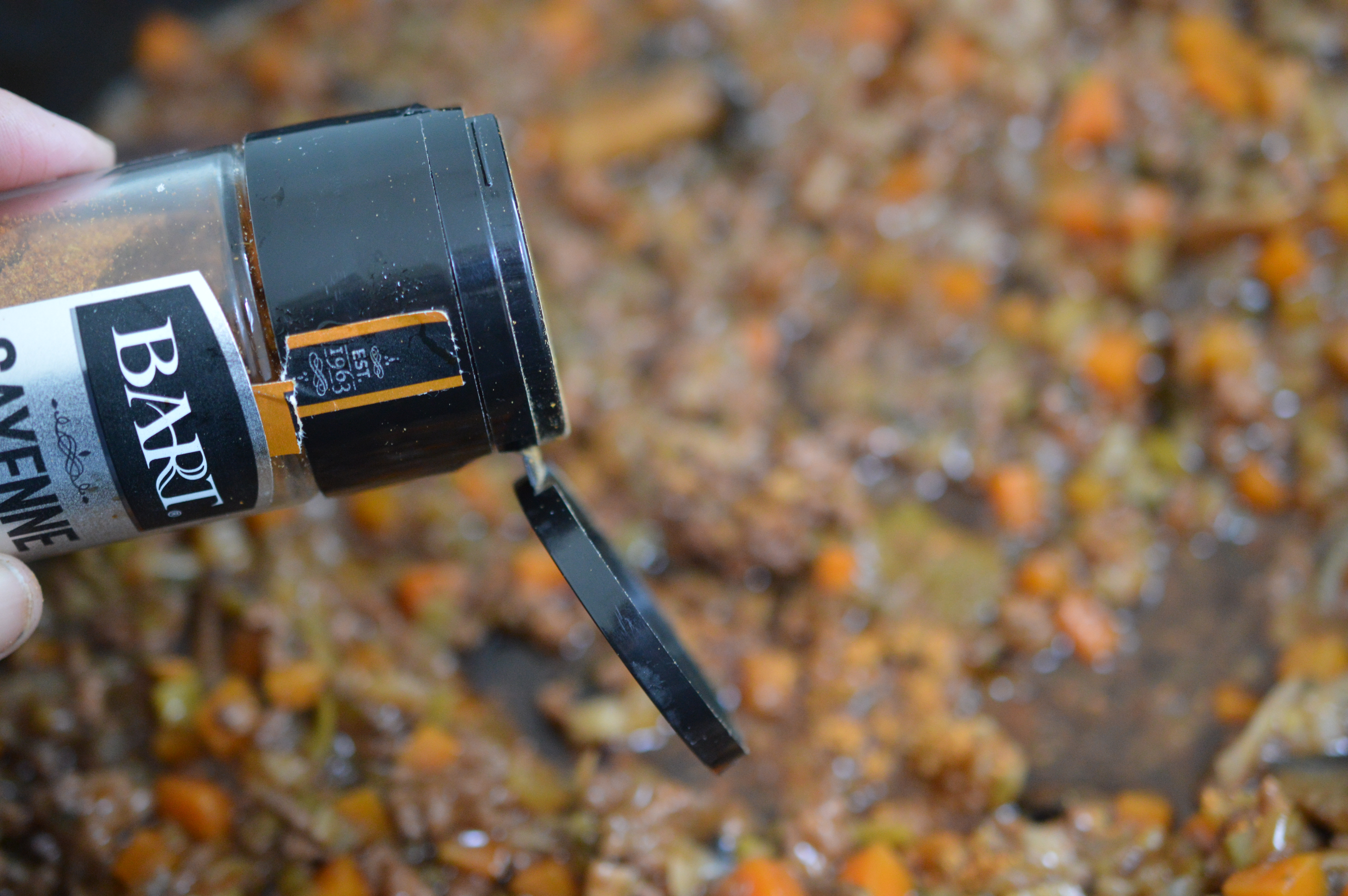 A sprinkle of cayenne pepper. Remove the thyme sprigs and bay leaf. Taste. Decide now whether it needs more seasoning. More cayenne? More Worcestershire Sauce? It shouldn’t be bland.