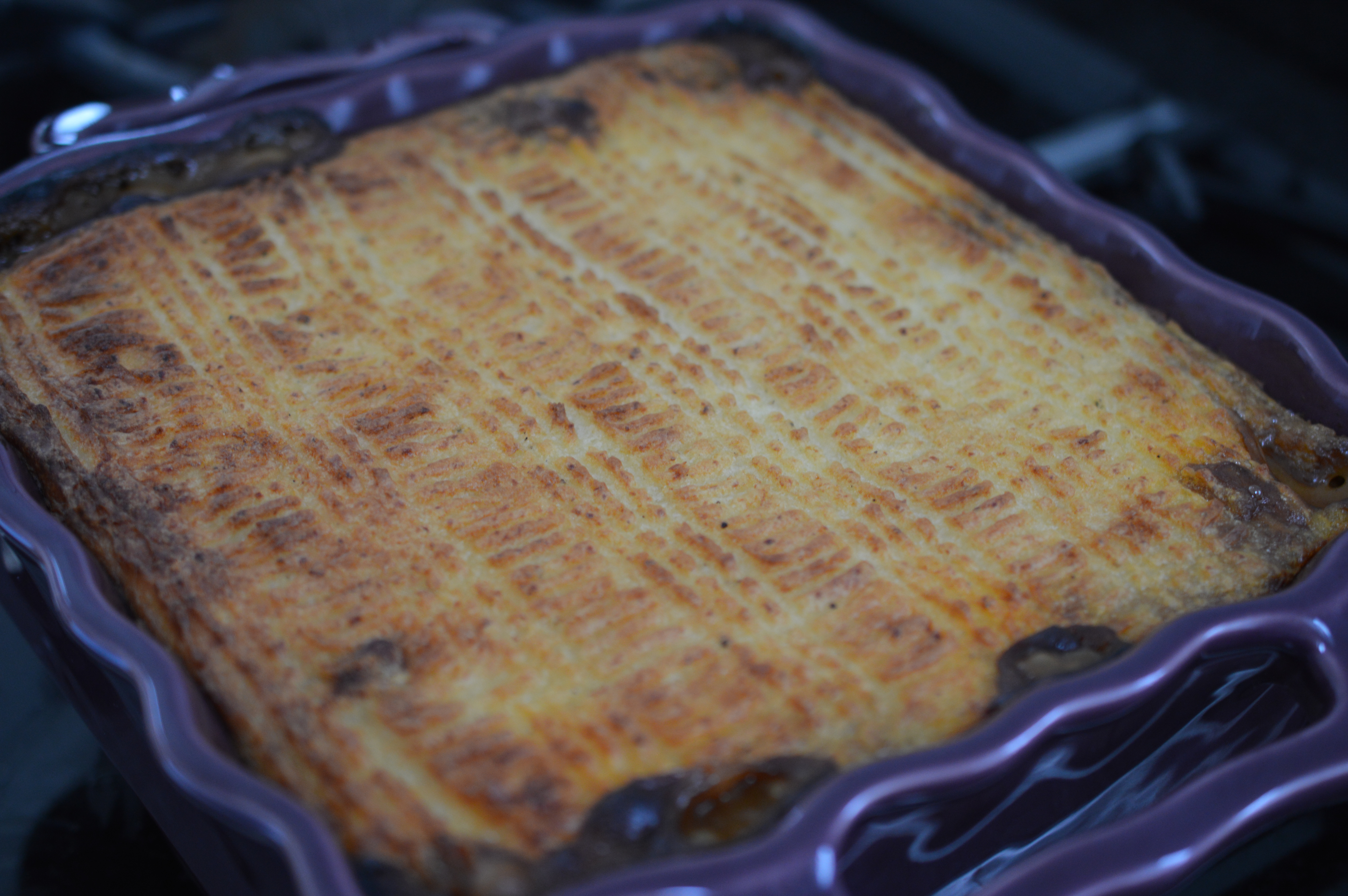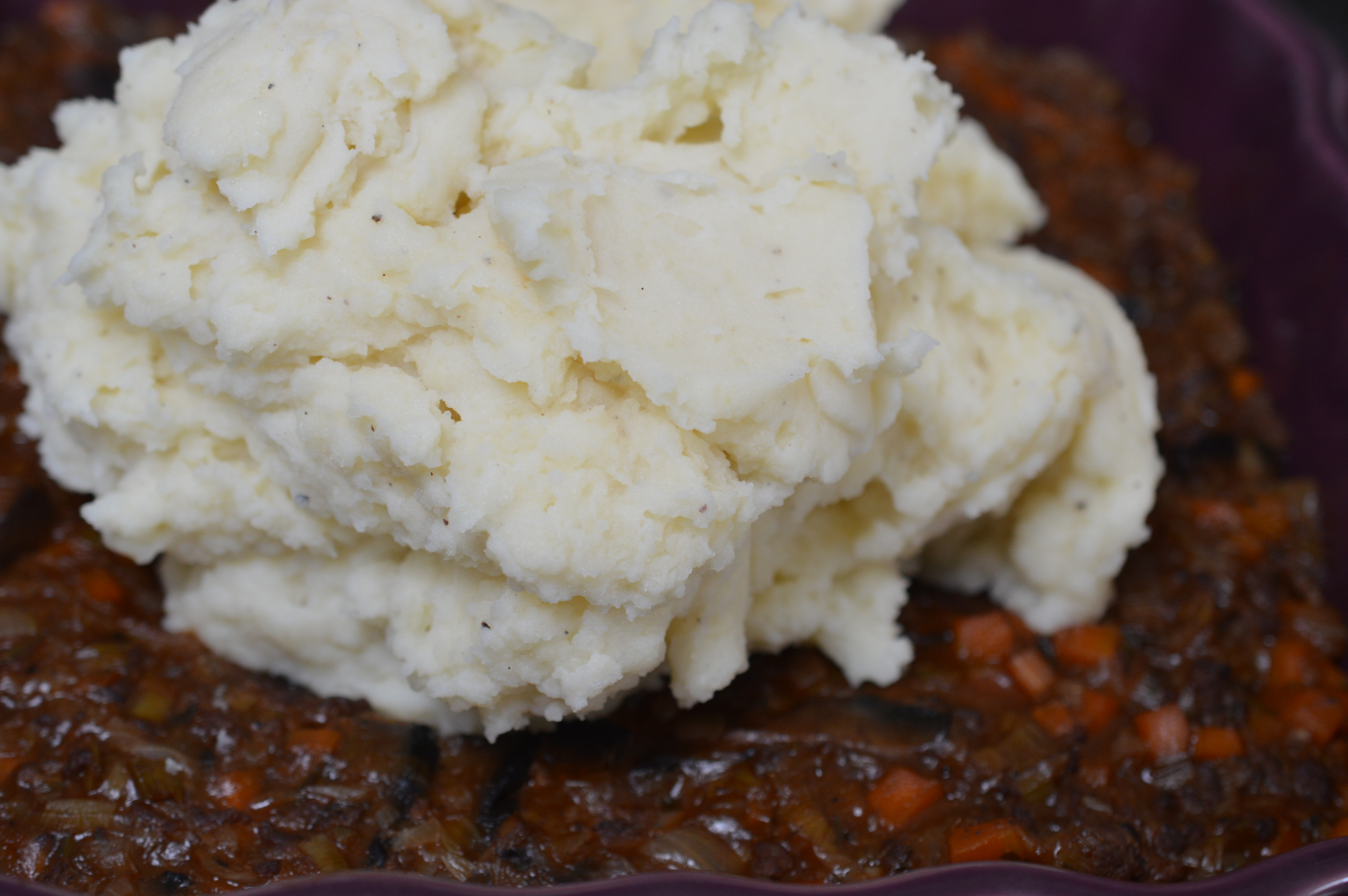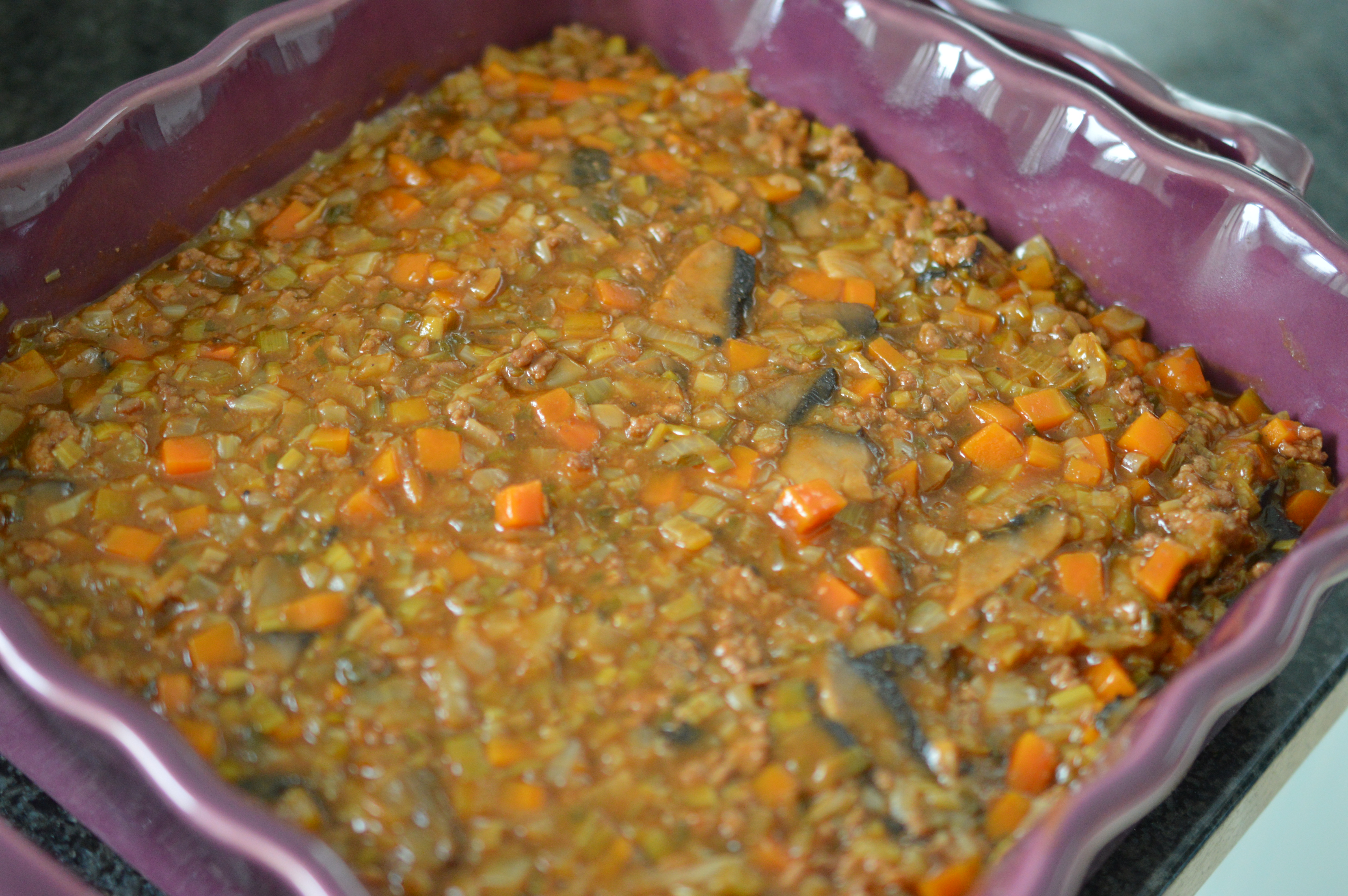Then tip the lot into your serving/baking dish. Leave to cool for thirty minutes or so while you get on with mashed potato topping.