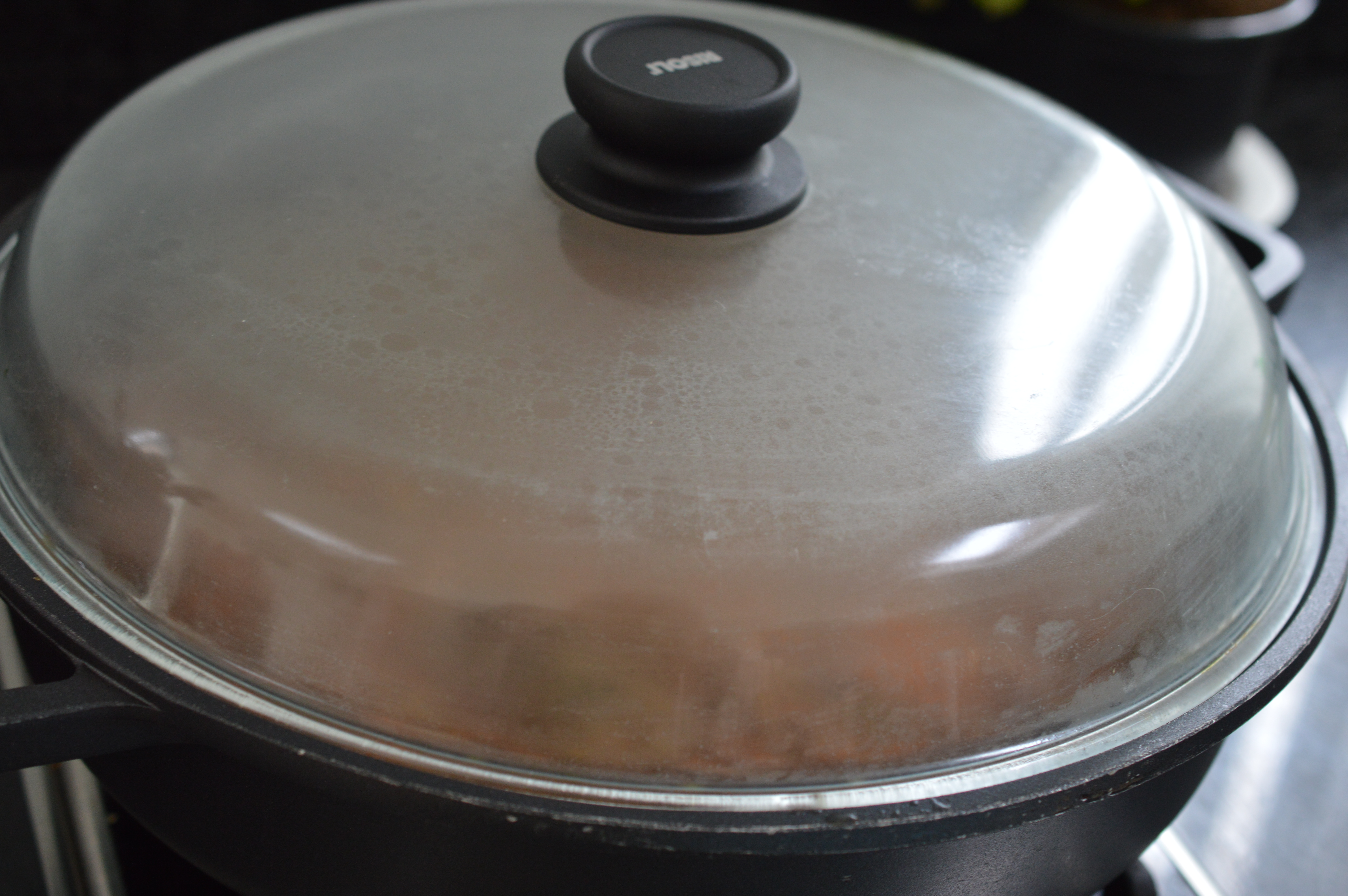 Now put the lid on and cook – very gently – for a couple of hours. Check every thirty minutes or so that it doesn’t need topping up with water. (I slip it into the Aga Simmering Oven and completely forget about it. Have I mentioned how much I love my cooker?)